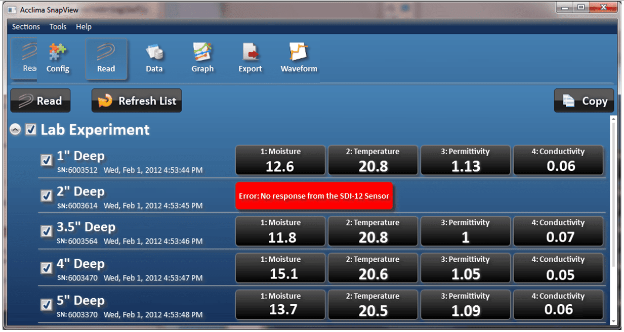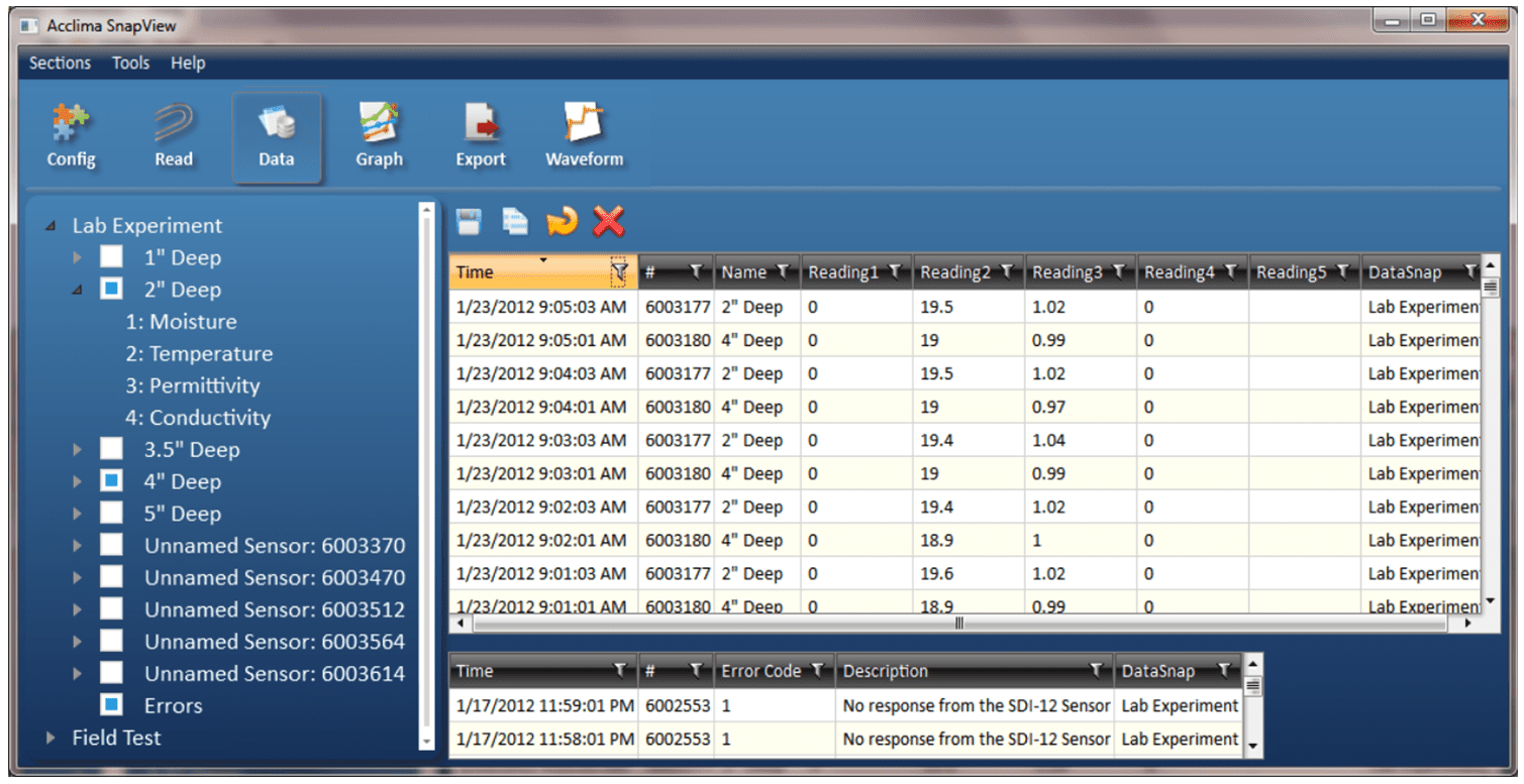 The Acclima SnapView software supports all SDI-12 sensor types.